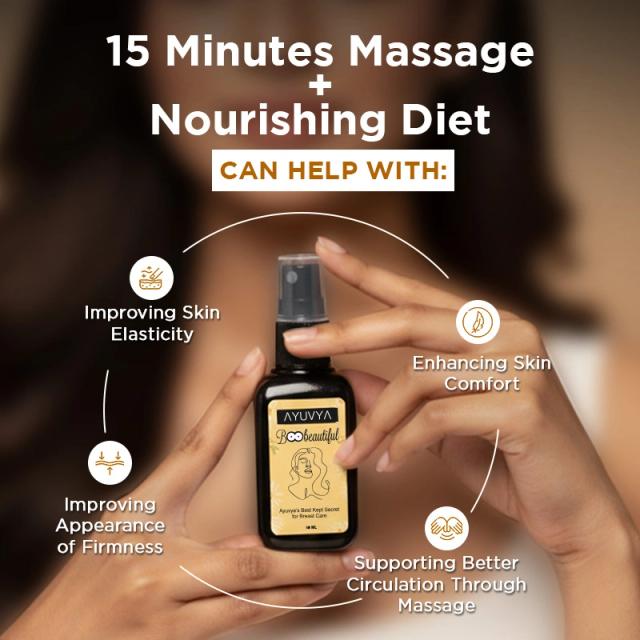 Consistent massage improves blood flow, softness, and elasticity. Using Boobeautiful during massage helps moisturise and nourish the skin, supporting suppleness and overall breast comfort.