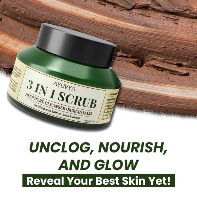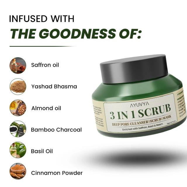 Ayuvya 3 in 1 Deep Pore Cleanser, Mask & Scrub