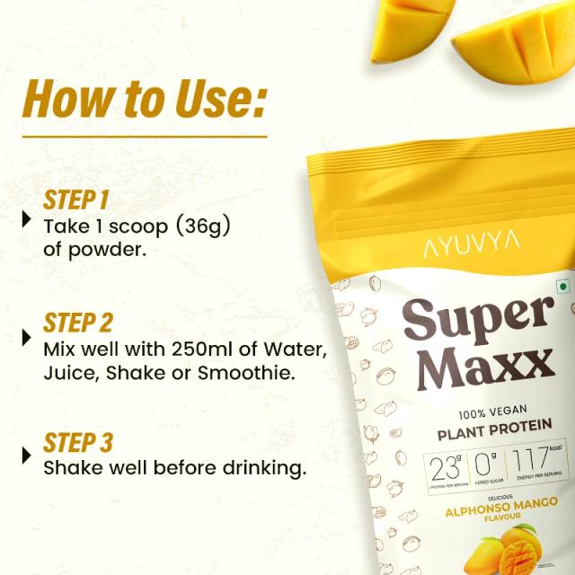 Ayuvya SuperMaxx Plant Protein Powder (Mango Flavour) | 250g